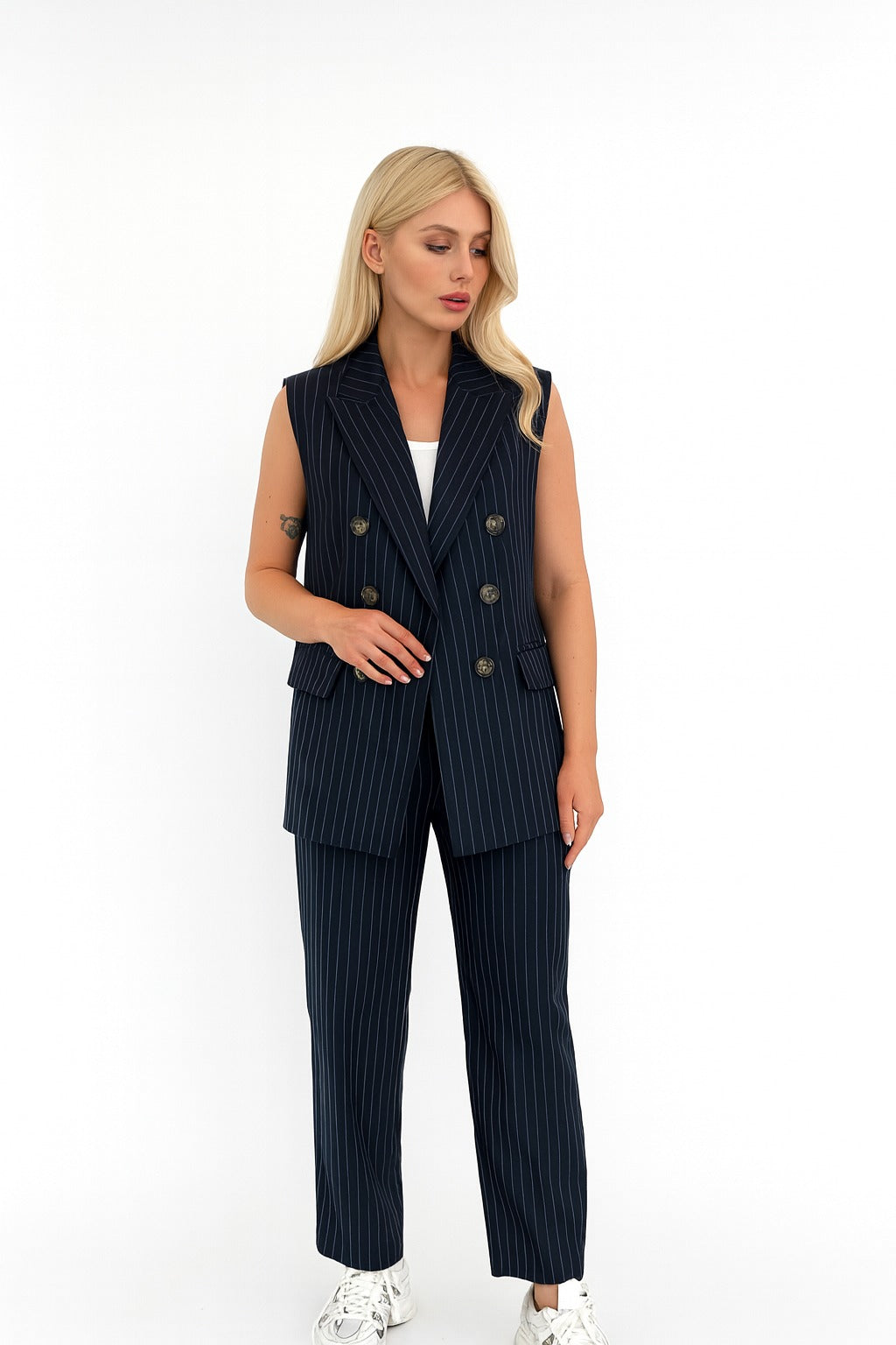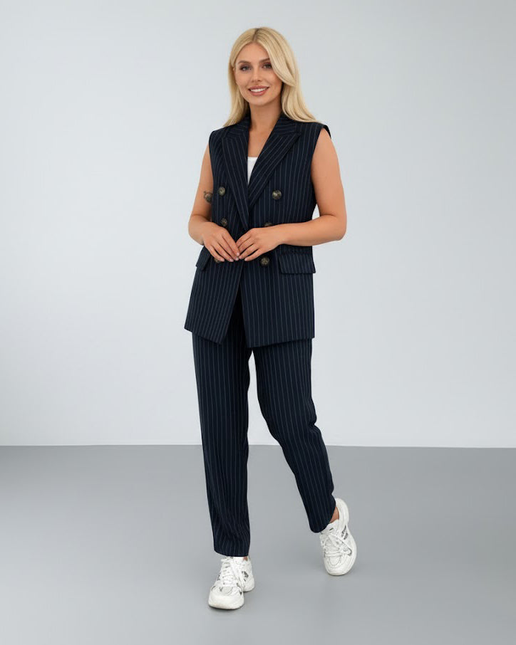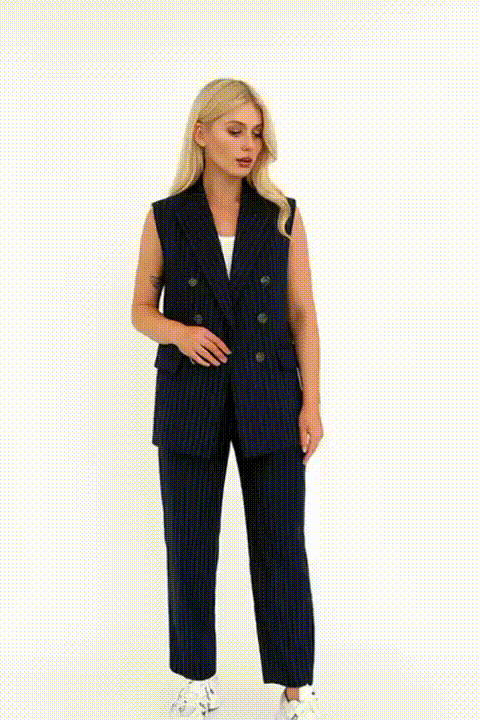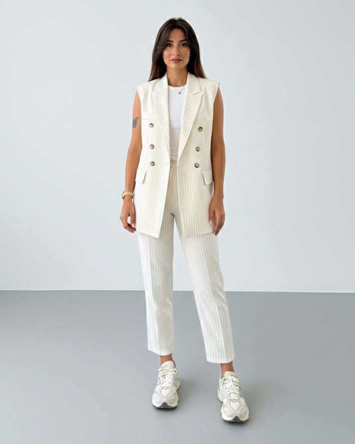 جاكت بقصة عصرية وبنطلون بقصة مريحة تعطي لوك متناسق ومثالي لكل المناسبات – شغل، اجتماعات أو خروجات كاجوال شيك.
